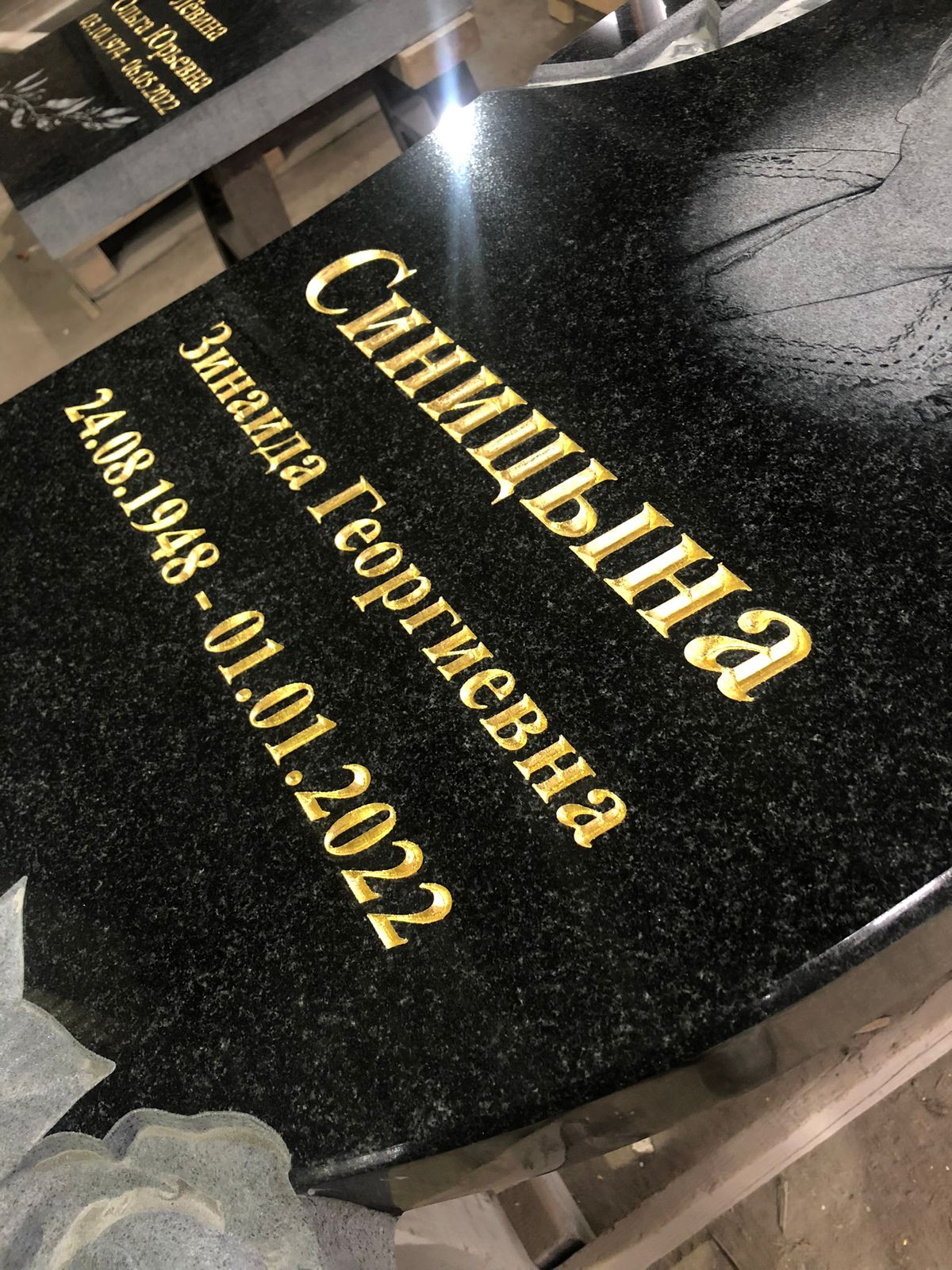 Далее идет нанесение на памятник эпитафий дат и ФИО. Нанести на памятник какой либо текст и даты можно несколькими способами: