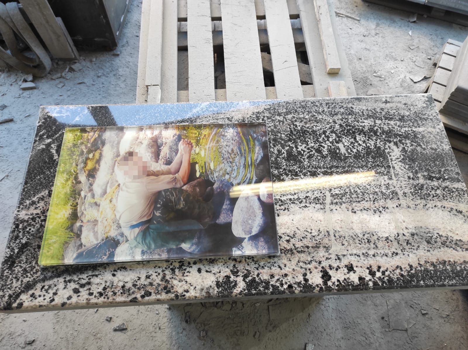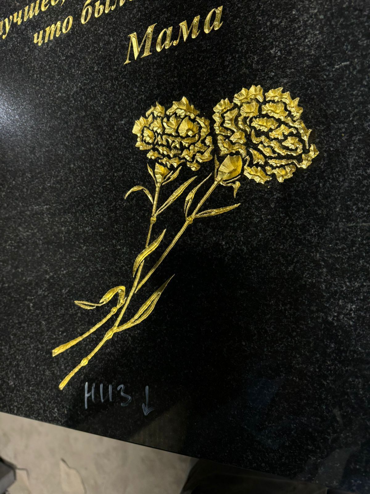- гравировкой , это самый распространенный и точный способ нанесения, она делаеться гравировальным станком. Надписи красяться специальными красками для гранита, особенно хорошо это используют на цветных камнях , чтобы выделить текст или даты.