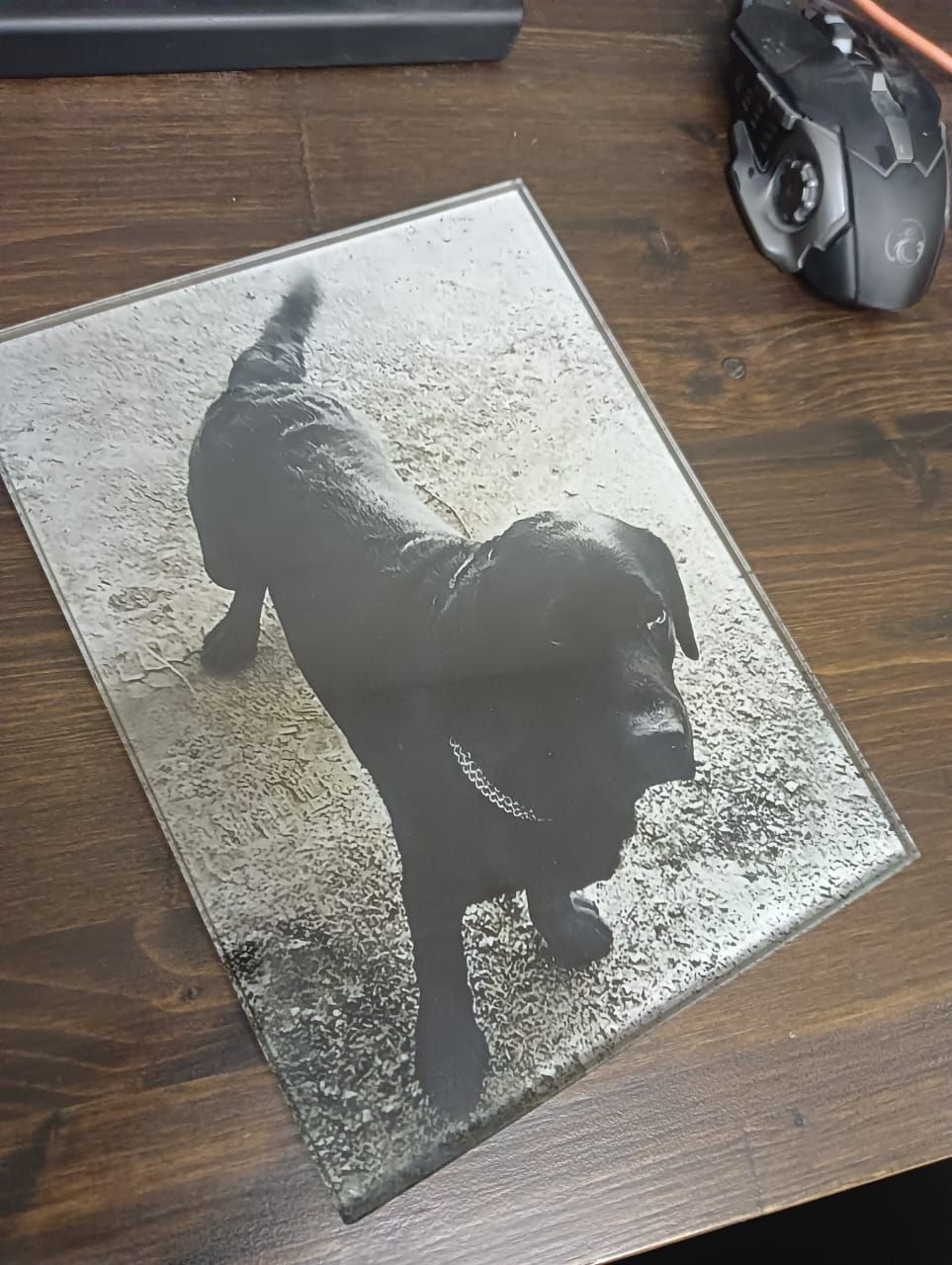 Также можно наносить гравировку в виде портрета на цветные граниты, у нас есть примеры как это выглядит